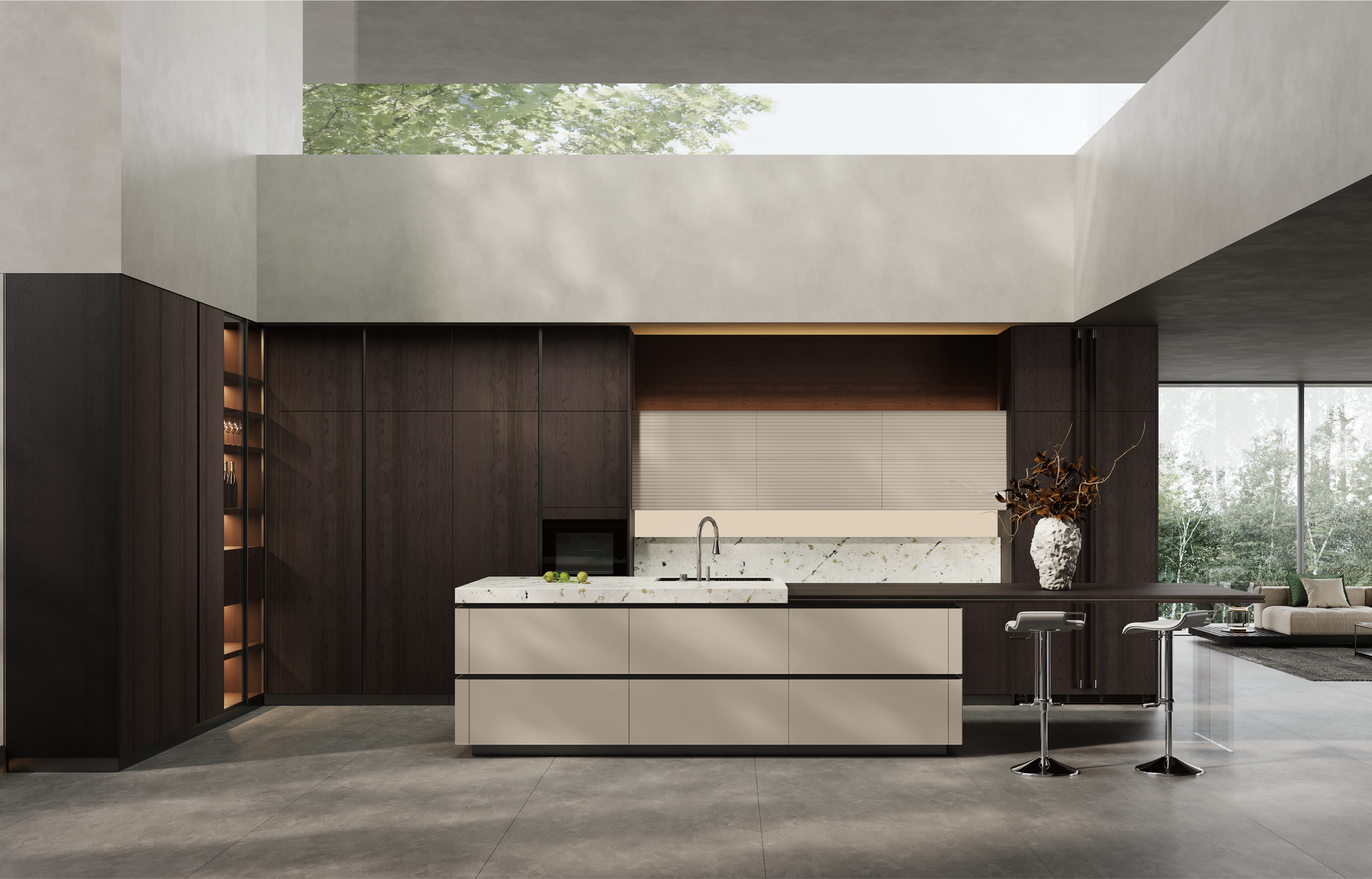 通过TVT体育厨柜量体裁柜,定制出适合主厨下厨的烹饪区和洗涤区的舒适高度。